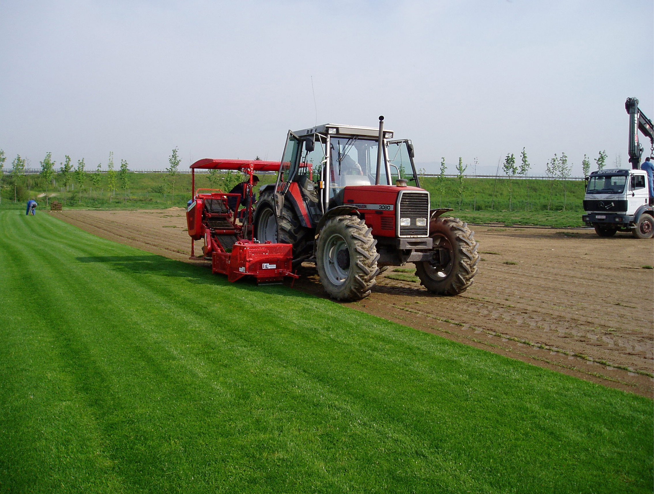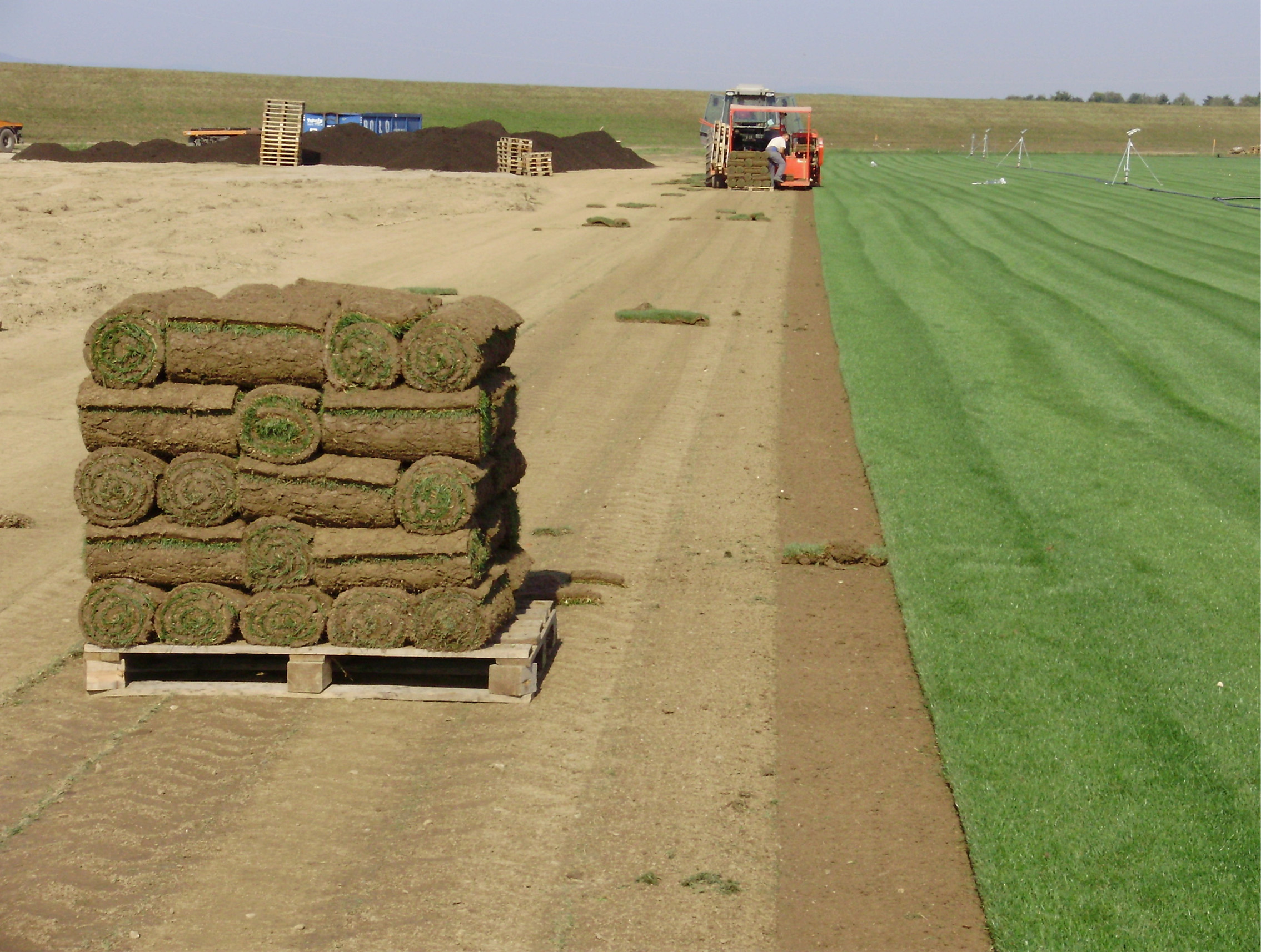 isporučuje se u velikim rolama dimenzija 8,00 x 0,73 m i postavlja se strojno uz pomoć specijaliziranog stroja. Uobičajena debljina reza je 3 cm, no može se prilagoditi i na deblji sloj. Moguća je ugradnja oko 1.000,00 m² travnog busena za sportske terene.